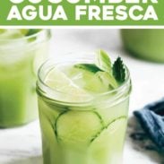 This particular version of agua fresca was inspired by A Spicy Perspective’s cucumber ginger mint agua fresca! Here’s a post with 4 ways to do cucumber agua frescas from Muy Delish. You can learn more about agua fresca here.