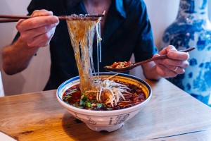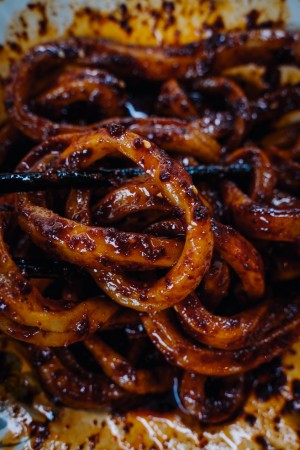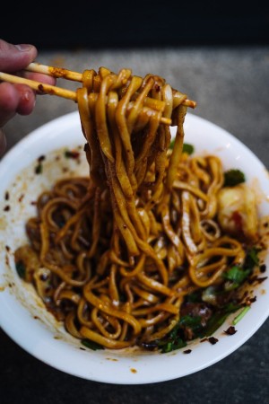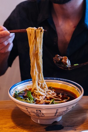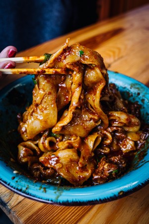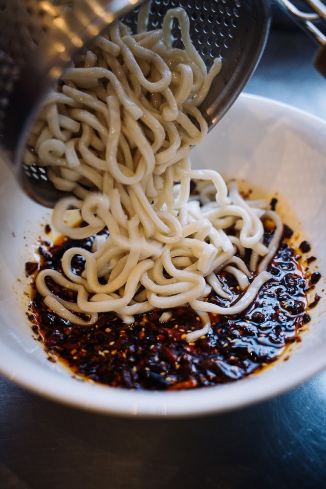 Liu's tianshu 'thicc boi' noodles with some real saucy action.