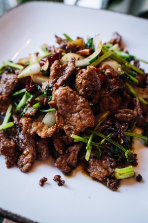 Wen Cheng’s specialty is wide biang biang noodles (a.k.a. belt noodles) from northwestern Shaanxi, with raggedy edges and a toothsome chew. These come topped with stewed beef chunks (eggplant for the vegans) with a bit less depth of flavor than I’d like. Wen Cheng’s version of that famous Xi’an dish, biang biang noodles with cumin lamb, is undeniably tasty, though the lamb—stewed ragout-style rather than wok-fried—has a muted rather than zippy cumin flavor.
