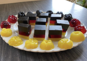Slowly, we upped our game. One friend made it his trademark to arrive with a bag full of soft tacos from Taco Bell. Later, our Taco Bell Angel and two other friends moved into the bespoke jello shot space, mixing and setting jalapeno margarita or orange creamsicle jello shots, heavy with indeterminate types of booze. At my send off party, when I left Toronto for Berlin, they made jello shots in the colour and shape of the German flag. Oh, mein Herz.