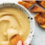 Here’s a good tip – if you make this in the Vitamix instead of a food processor, you don’t need to peel the chickpeas and it’s just as smooth as if you did!