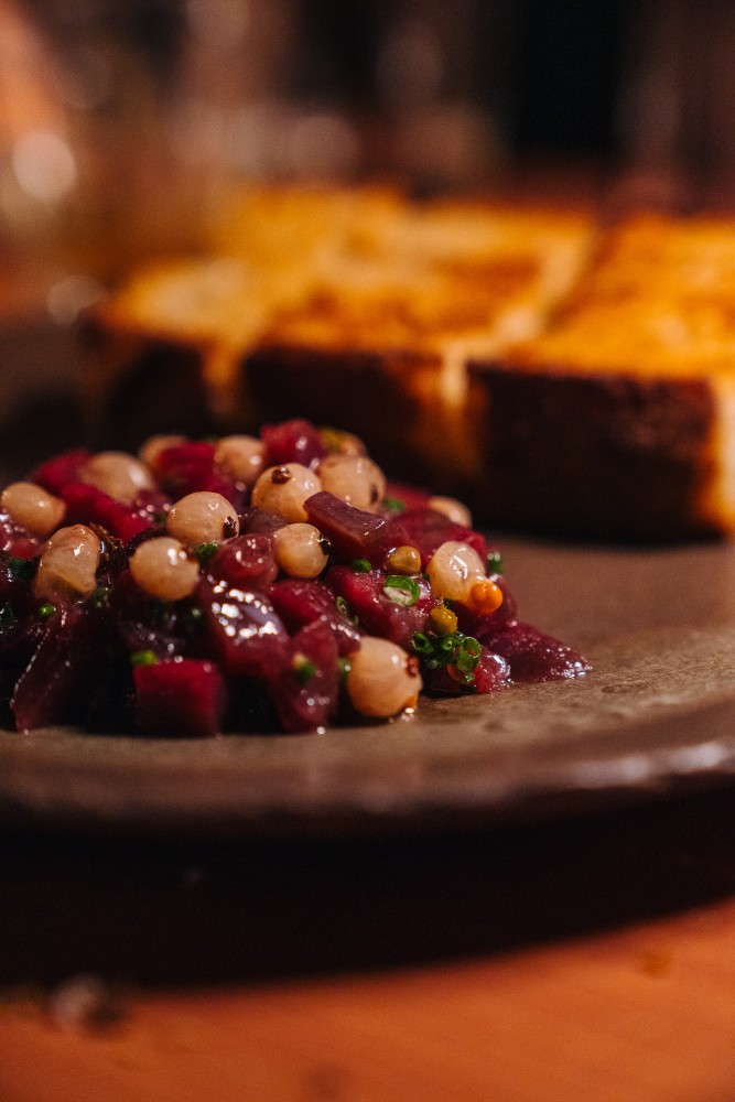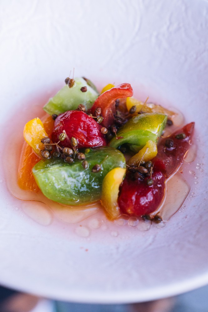 The first striking highlight of this restaurant is definitely the location in a prominent red building situated at the end of Park Gleisdreieck. Inside, the light of the venue gives a strong Nordic and Scandinavian vibe. This vibe is also reflected in the menu, which breathes new Nordic with a focus on regional availability of ingredients. They specialize and are talented in the use of vinegars, ferments and garums, giving the dishes a welcome brightness. You could get a seasonal tomato dish with elderberry capers, aged yellow beets with sea buckthorn and dandelion, or roe deer tatare with beef garum and currants. The dishes will depend strongly on the season and what's ripe in that moment. The drinking game is strong with a great selection of wines, both natural and classic, and especially a refreshing offering of non-alcoholic alternatives including some of the best shrubs we've had in the city. In our opinion, this place is definitely worth a visit.