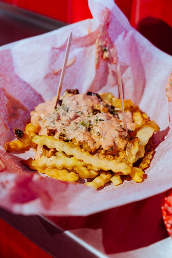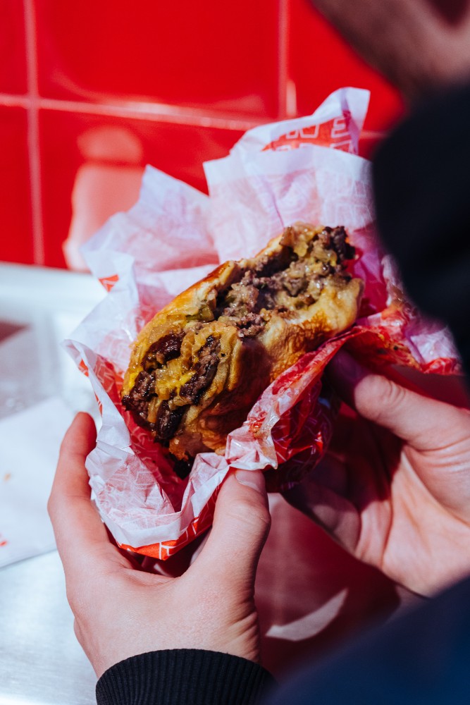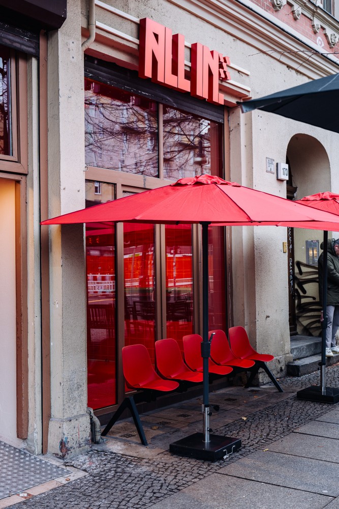 A burger joint on Schönhauser Allee that opened in 2023, offering a version of the famous New York 7th street burger with burger sauce and grilled onions. All IN is famous for its red interior and minimalist approach to burgers: The only thing on the menu are Cheeseburgers, Crinkle Fries and Milk Shakes, and if you're looking for a simple yet quite greasy burger, this is your place to go.