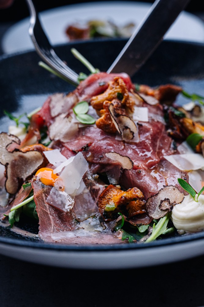 The carpaccio is fancied up with chanterelles and truffles and definetely worth a try.