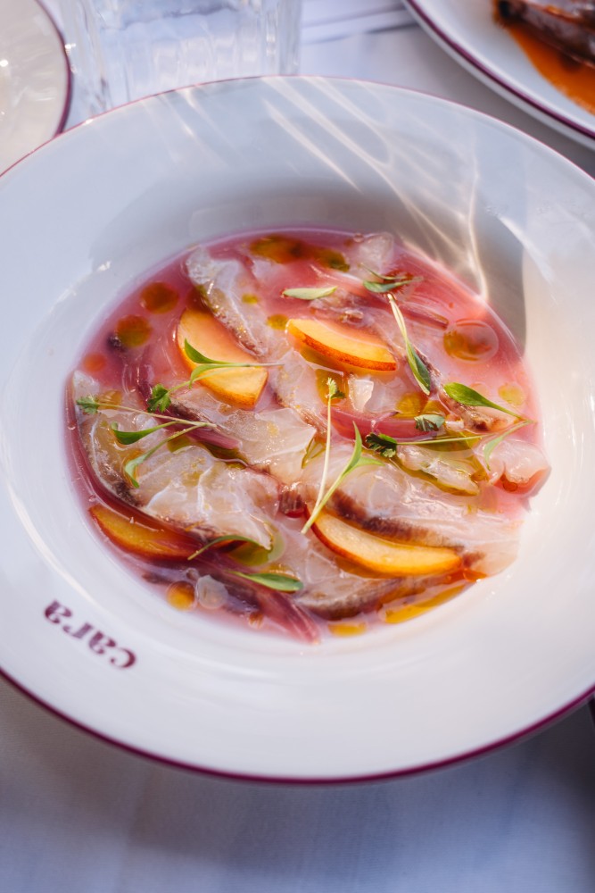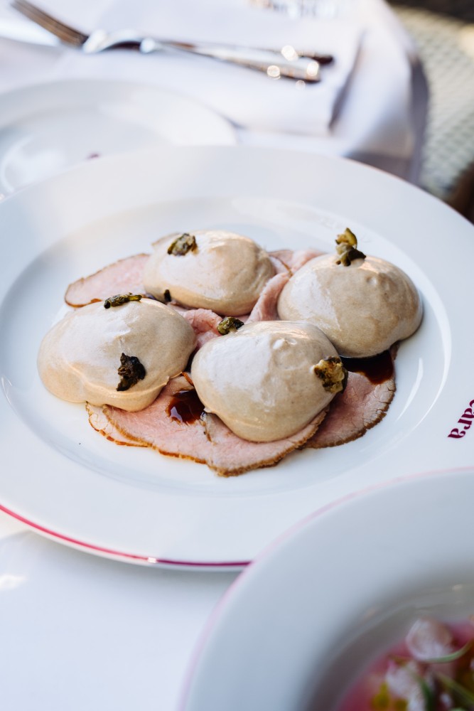 Cara, now occupying the former Frea space in Mitte, is an upscale Italian restaurant with a lively, posh party vibe and Ibiza-inspired energy. The kitchen, led by the former Frea head chef, serves beautifully fresh crudo, classic starters like Vitello Tonnato, and standout seafood dishes such as perfectly grilled red prawns. Expect well-made pastas, attentive service, and great drinks—all in a bold, music-filled setting.