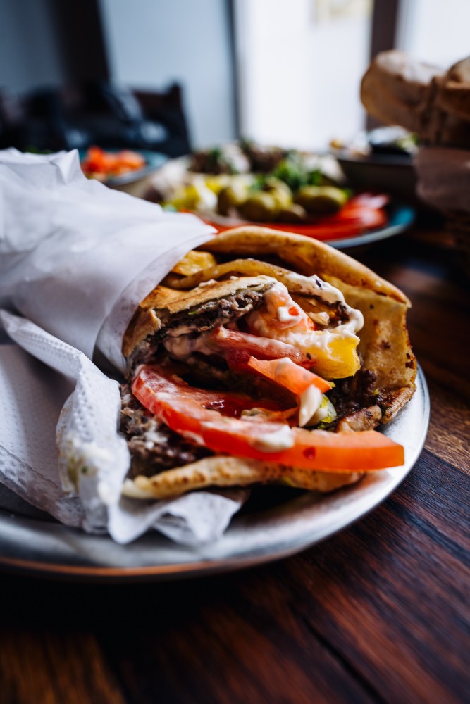 The secret Pro move: A kafta sandwich, which is done uniquely by smearing the lamb mince lahmacun style on a lavash bread and then griddle-frying it. When crispy it is then rolled up with Toum, pickles and his secret Lebanese green chili hot sauce. This thing is f-y marvelous. Also, potentially the best fattoush in the city.