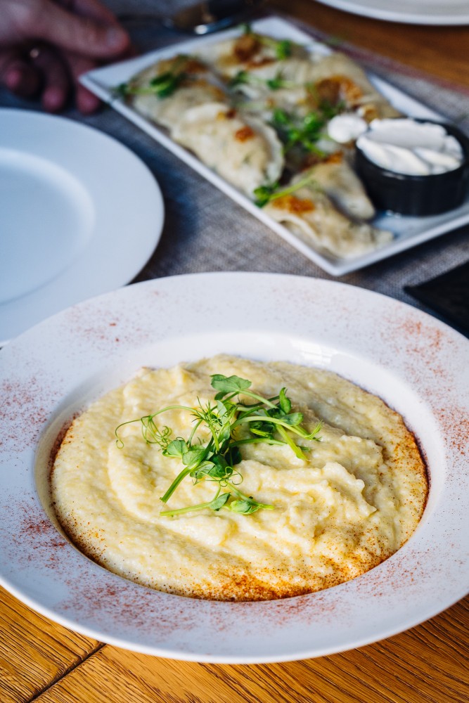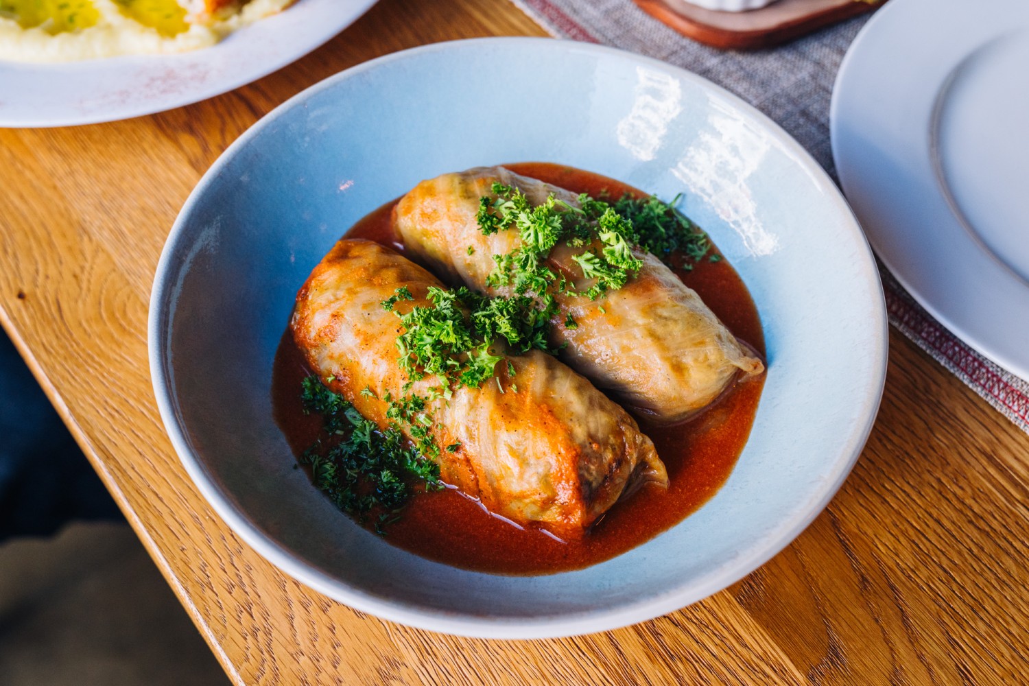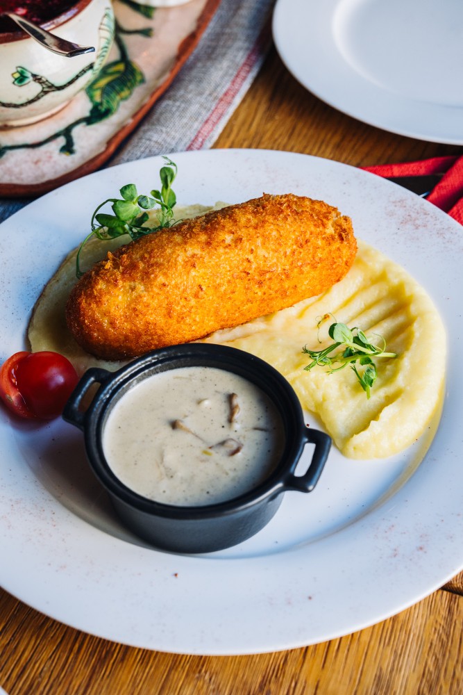 Die Mitte in Kirschen is Berlin’s most modern Ukrainian restaurant, offering a full range of traditional dishes—from steaming borscht to pillowy vareniki, hearty pelmeni, and golden Kyiv chicken. Located in the heart of Charlottenburg, the space is sleek and contemporary, but the food stays true to its roots—no twists, no frills, just the classics done right. On weekends, expect a full house, live music, and a lively Ukrainian crowd.