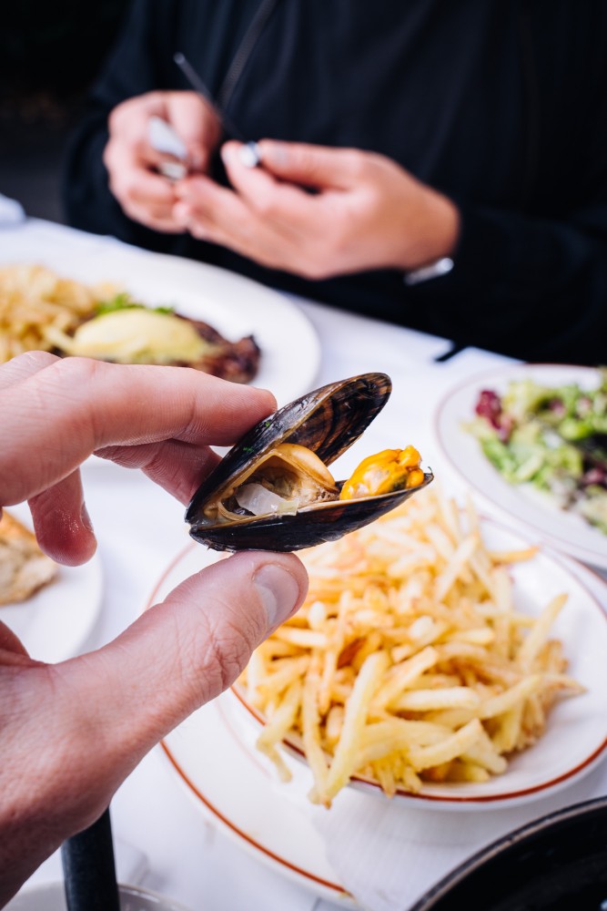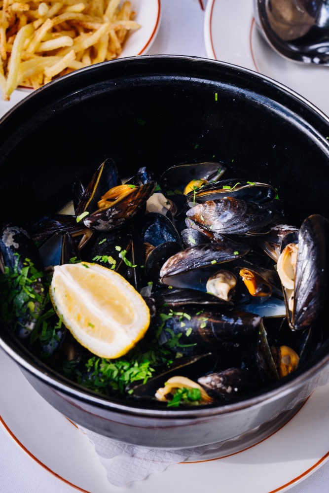 Order the entrecôte or moules frites and savor the delicate matchstick fries