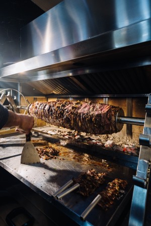 The black-and-yellow storefront on Kottbusser Damm may be one of the most special entries on the list. While the Čag Kebab sandwich sold here isn’t technically a Döner, it’s similar enough and, especially, delicious enough that it has to be on your radar. Čag Kebap is essentially the original Döner, the horizontally spinning Neanderthal relative to the Homo Sapiens Döner that rose to vertical spinning. This specific version is made from 100% lamb and that makes it, at this point, the only, rotating Turkish skewer in Berlin that’s made entirely from lamb (all others using lamb just mix in a bit of lamb or lamb fat). The meat here is roasted over an open fire and is stunningly delicious, eat it as mini skewers or in a toasted bread roll with onions, tomatoes, and parsley.