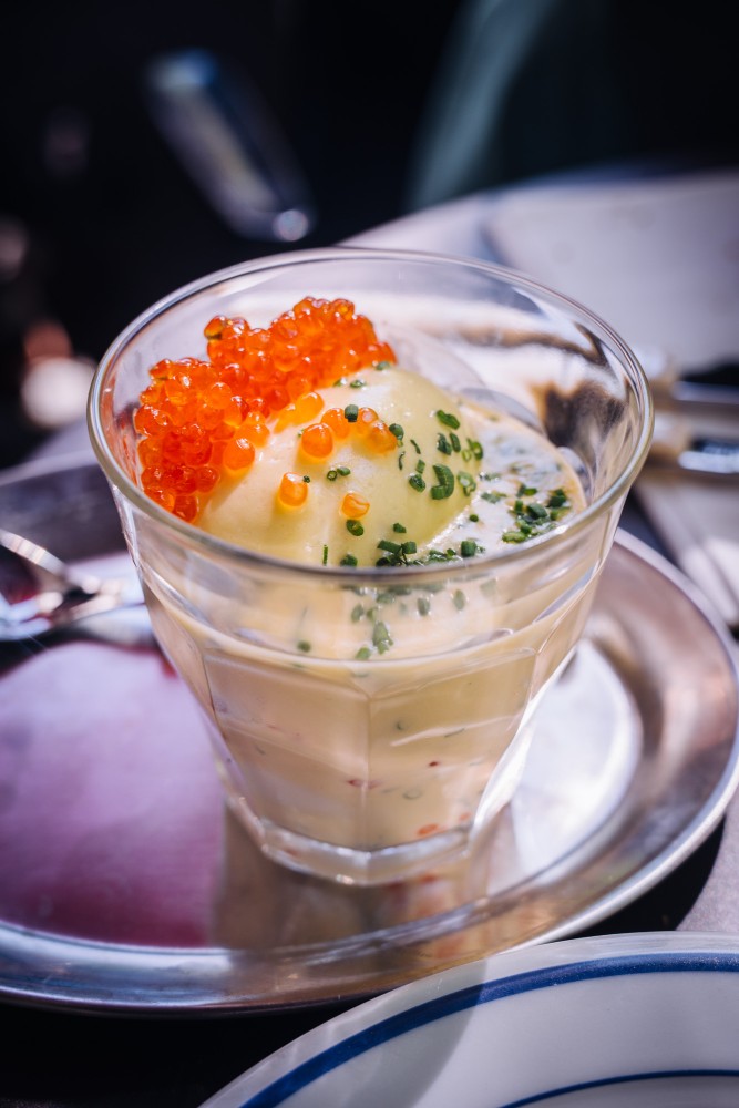 Jolie Bistro, the latest project from the team behind The Catch and November, brings a touch of 1920s yacht-inspired elegance to the heart of Kollwitzplatz. With its mahogany-style interiors and prime corner location, Jolie is quickly becoming one of Berlin’s most beautiful dining rooms-perfect for a sunlit breakfast or a wine-soaked evening. The breakfast menu is simple yet refined, featuring dishes like stracciatella with tomatoes, eggs with hollandaise and trout roe, mortadella on brioche, and a standout Toast Skagen-a creamy shrimp salad on brioche that nods to Nordic influences. The vibe is relaxed, making it ideal for a leisurely morning coffee or an early glass of wine while soaking in the vibrant market atmosphere.