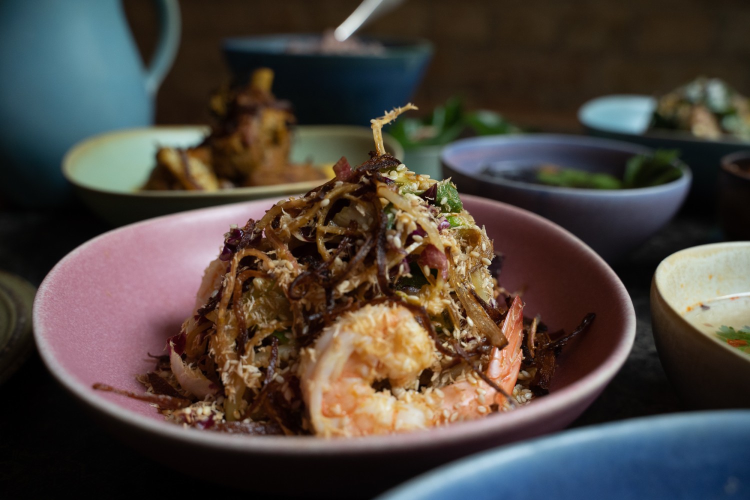 Khao Taan offers one of Berlin’s most refined and personal Thai dining experiences. Located in Friedrichshain, chef-owner Gaan serves a set menu inspired by his childhood, presenting Thai family-style meals with rare care and craftsmanship. Expect dishes made with house-pressed coconut milk and premium ingredients, all woven into a meal that feels both intimate and elevated. For those seeking Thai food with depth and soul, Khao Taan is essential.