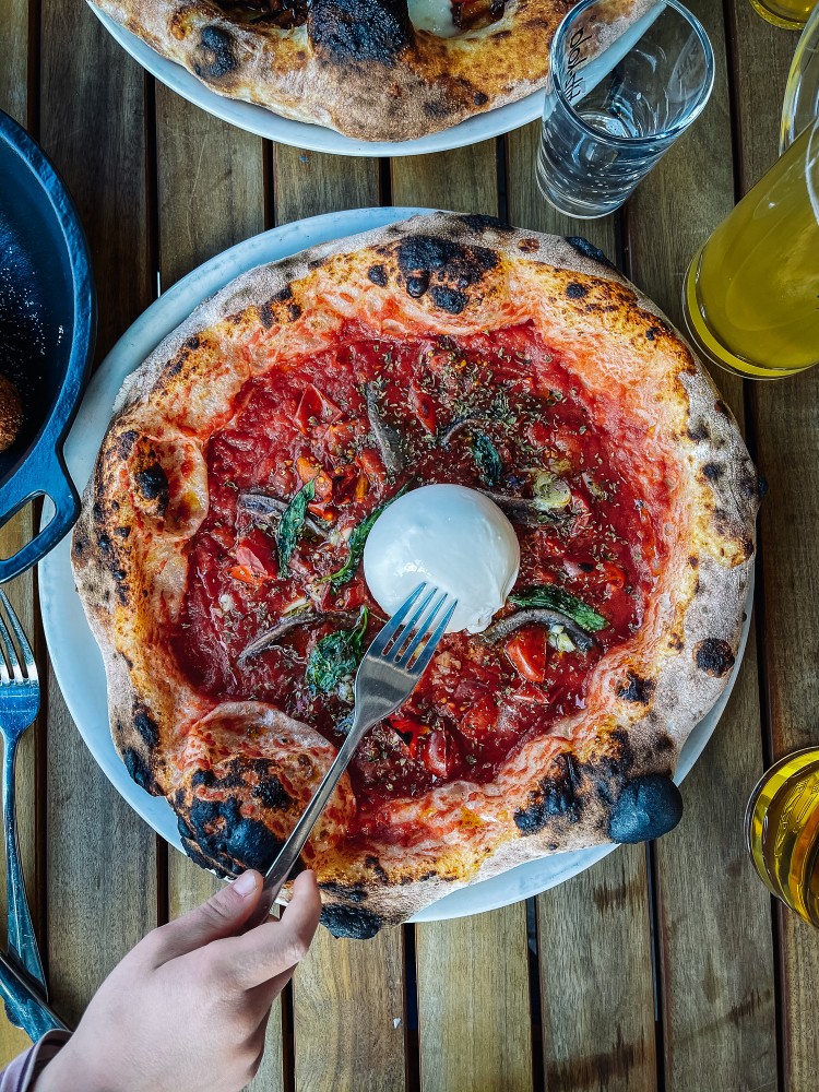 Malafemmena is a traditional Neapolitan pizzeria located in both in Berlin's Prenzlauer Berg and Friedenau neighbourhoods. Their pizzas are made according to the strict rules of the Neapolitan pizza tradition, using only the freshest ingredients and cooked to perfection in a gas-fired oven. It's also the only pizzeria in Berlin with an AVPN (Associazione Verace Pizza Napoletana) badge, the official association of Neapolitan pizza bakers. The menu features a variety of classic and creative toppings, including vegetarian and vegan options, and as a perk they also offer a wife variety of fried, Neapolitan snacks. The flagship location in Friedenau also offers a full menu with pasta and secondi. In addition to their original Friedenau location, since 2019 they also have a second location in Prenzlauer Berg. The cozy atmosphere and friendly staff make Malafemmena a popular spot for locals and visitors alike. Don't miss their delicious desserts, including their outstanding Tiramisu.