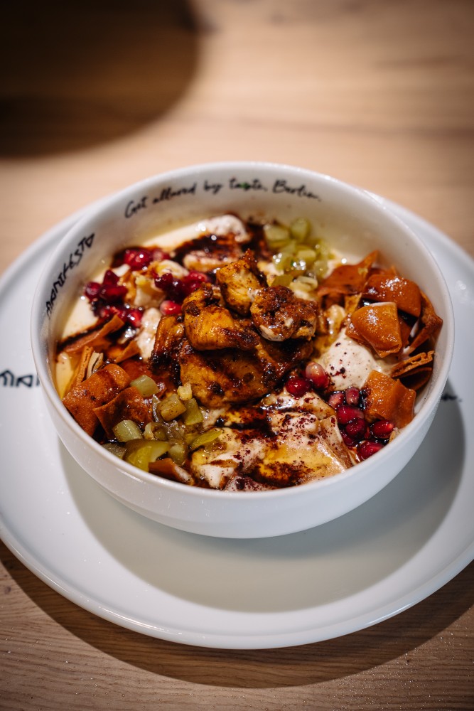 Malakeh is a renowned Syrian restaurant in Berlin, famous for its authentic Middle Eastern cuisine. The restaurant is run by Chef Malakeh Jazmati, who gained popularity with her appearance on the German cooking show "Kitchen Impossible". Malakeh's menu includes a variety of traditional Syrian dishes, such as Fatteh, Shish Belfakhar and Jebet Altajer as well as Malekeh's famous comfort food interpretations of Syrian classics. Malakeh has two locations in Berlin: one in the Schöneberg neighborhood and the other at the Manifesto Market in Mitte. The restaurant's cozy atmosphere and friendly service make it a perfect spot for a casual lunch or a dinner with friends.