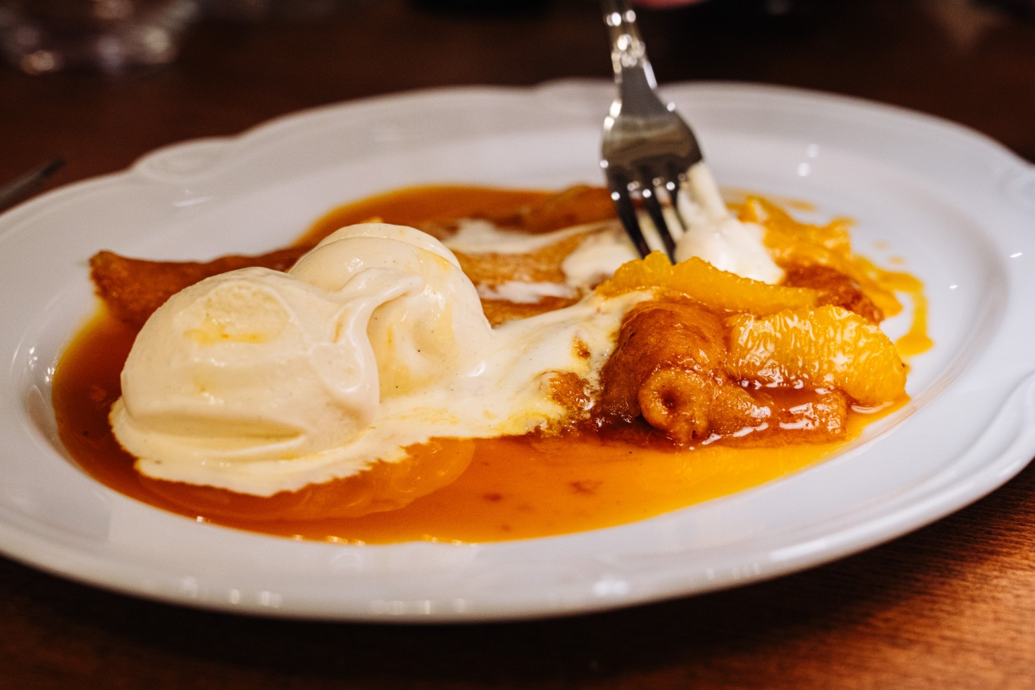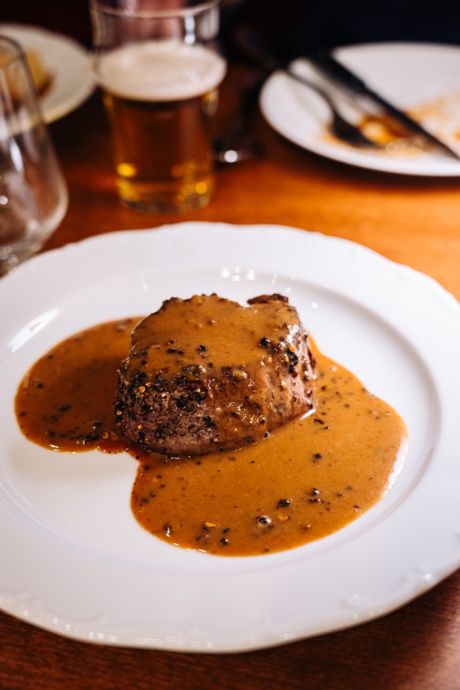 Don’t miss the sea bass loin with pink Ruinart champagne beurre blanc and the chicken with morelles. Open for lunch also!