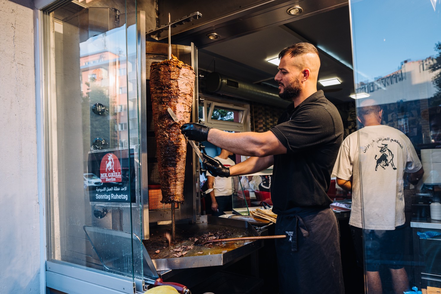 Located in an unassuming corner spot on Sonnenallee, Mr. Grill (yes, really) is run by an ambitious team hailing primarily from Iraq producing some of the most quality and expertly executed spinning meat in this competitive hood. Don't sleep on the kebab cooked over charcoal - how could you - they're constantly loading up fresh meat swords as fast as they can. Red pleather booths, Hollywood Stars on the walls, blasting music, and a delicious smoky haze hanging in the air - what more could you want?