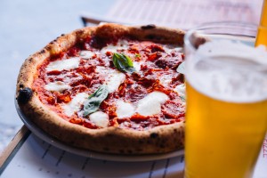 Get the white Pizza Sironi with Saffron cream, Salsiccia and seasonal vegetables