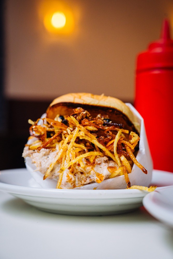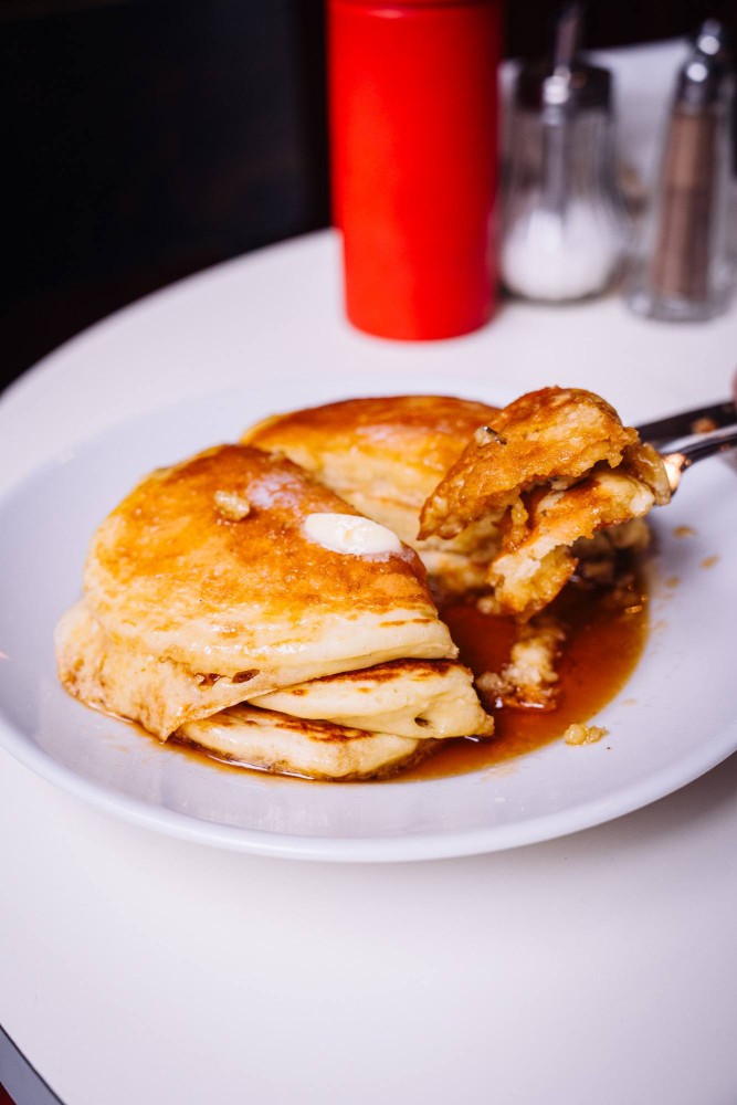 The core menu is tight, smart, and made for all-day consumption. Thick, syrup-soaked pancakes share real estate on the menu with dressing-dripping wedge salads, peppery chopped cheese sandwiches, and a beautifully crusted burger served in the softest bun. The fries come golden and marvelously crunchy without a trace of dryness. It’s casual food elevated through care, clarity, and the kind of skill you don’t need to show off when the plates do the talking.