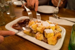 Good thing that this is one of the best schnitzels in Berlin, with perfectly juicy veal meat and a crust fried to perfection. The same quality level and size of portions is applied to the other dishes as well and it's really hard to go wrong at Alt Wien. And regardless whether you managed to finish your mains, I would strongly advice you to at least save some mental space for a dessert because Alt Wien serves the best damn Kaiserschmarrn in Berlin (as always, to my knowledge). I strongly recall my first encounter with the dish at Alt Wien, we visited with a big group and were convinced to order the dessert in a size that would allow everyone to sample it. Big mistake, literally, since 20 minutes later the most ridiculous mountain of the mashed up pancake dish was slapped in front of us which kept us laughing hysterically for the next 5 minutes. But only until we started sampling it and joined an eating frenzy in complete silence. I've tried this dish a lot of times but nothing comes close to the Alt Wien version, it's insanely delicious and in the end it wasn't a problem to devour the mountain.