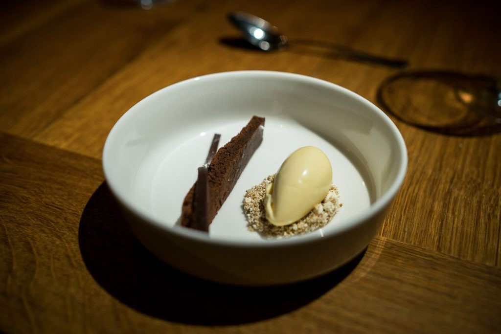 The first thing you'll eat at Dóttir is a lovely basket of freshly baked bread with a bowl of liquid, browned butter and this crazy delicious combination sets the tone for the rest of the meal. You will for sure encounter the browned butter with the distinct tones of caramel at some point throughout the meal. There is no a la carte ordering at Dóttir, your only choice is a 4-course menu with the additional options of an extra plate of selected raw milk cheeses and a wine pairing. This translates into a lighter starter followed by two larger plates where one always is a fish dish, all rounded off with a dessert.