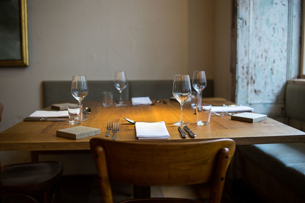 Dóttir is located in a stunning venue and the building adds another layer of fascination to the story of the restaurant. The house on Mittelstraße is an old Jewish merchant house from the 1880's and also an abandoned Stasi surveillance centre. The whole building is actually scheduled to be refurbished in 2016 but Dóttir has found a temporary home here. The two rooms of the street side venue were renovated carefully, applying a very tasteful mix of old and new furniture while still preserving the soul and walls of this extraordinary venue. The result is one of the cooler restaurant venues in Berlin where the warm lights of the restaurant shine like a beacon the Berlin night and light up the grey building.
