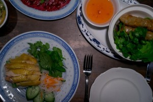 The result is unique, the soups are packed with flavour from the first to the last sip and the meat a true delight to eat, be it the succulent chicken or the raw strips of beef steak in my favourite soup the Phở bò tái. The rest of the food does not reach the same levels of excellency, but is never the less a very entertaining mix of delights. Like the Hainan Chicken, a dish with Chinese origins that you will find across Asia and whose centrepiece is a perfectly steamed breast of chicken. or the Trois Couchons, the three varieties of pork (braised, cooked, grilled) that will satisfy any pork cravings. The Banh Mi baguettes are for my taste to close to the original versions served on Vietnamese streets with a slightly too dry bread.