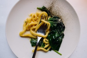 The only fault I could find with the signature potato mash dish with whey was that I wanted more of it. MUCH more. The hand rolled pici (a kind of fat spaghetti) with black nori powder, cheese, yuzu and spinach were marvelous and therefore inhaled in about 18 seconds, give or take.