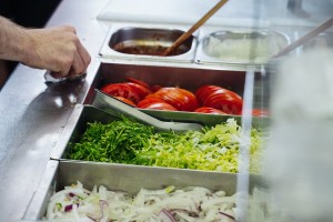 "Grilled, juicy meatballs tucked into a toasted light flatbread roll and packed with loads of fresh condiments namely salad, tomatoes, onions and sauces."