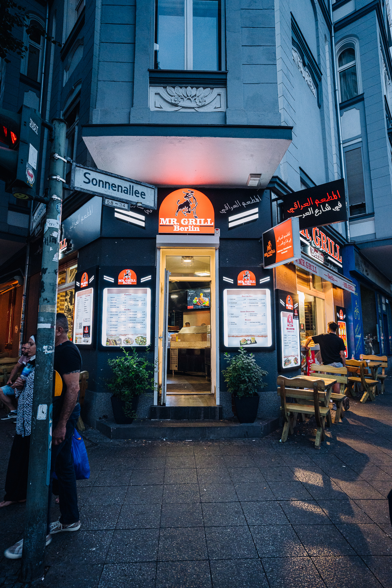 Located in an unassuming corner spot on Sonnenallee, Mr. Grill (yes, really) is run by an ambitious team hailing primarily from Iraq producing some of the most quality and expertly executed spinning meat in this competitive hood. Don't sleep on the kebab cooked over charcoal - how could you - they're constantly loading up fresh meat swords as fast as they can. Red pleather booths, Hollywood Stars on the walls, blasting music, and a delicious smoky haze hanging in the air - what more could you want?